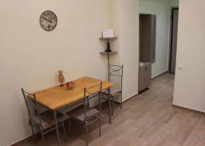 Das Apartment ist mit einer Mikrowelle, einer Kaffee-/Teemaschine und einem Kühlschrank in der Küche und einer Küchenzeile, einer Essecke und einer Sitzecke in den Zimmern ausgestattet. Einige Wohneinheiten haben eine Sonnenterrasse.
